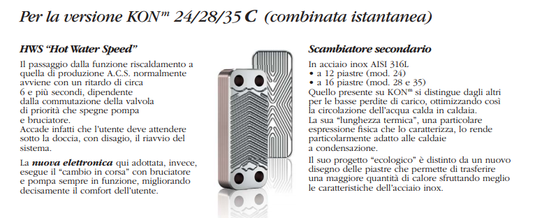 - Scambiatore secondario in acciaio inox a 12 piastre a lunghezza termica, ottimizzata per la condensazione, 14 piastre (mod. 28-35)