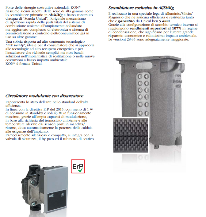- Circolatore modulante in funzione della richiesta di potenza gestito dalla elettronica di bordo ad alta efficienza conforme dir. Erp 2015