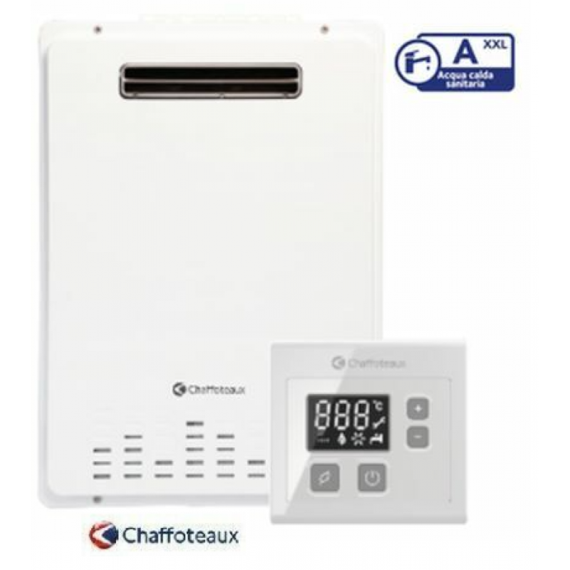 Lo scaldacqua Caffoteaux Avenir Plus Outdoor estremamente compatto, con design del tutto innovativo elegante e semplice da installare, con accensione elettrica e controllo di fiamma. Attraverso un nuovo comodo a controllo remoto si serie con cavo che permette di gestire o modificare visualizzando la temperatura e le funzioni.