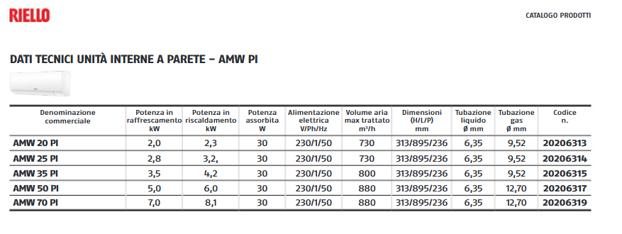 Codice unità interna 3 x AMW 25 PI + unità esterna 355 PI
