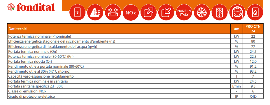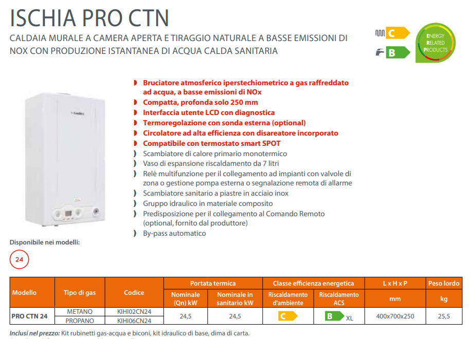 Caldaia camera aperta Fondital modello ISCHIA PRO CTN 24 GPL tiraggio naturale Low nox