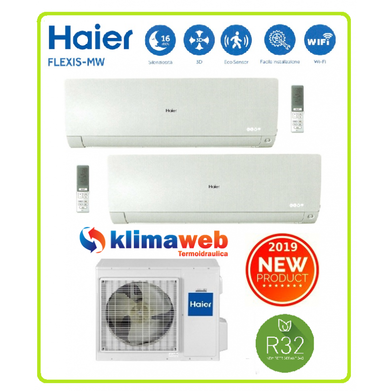 Climatizzatore condizionatore Haier modello Flexis dual 12+12 12000+12000 esterna 2U50S2SF1FA colore bianco inverter gas R32 classe A++ Wifi integrato ultimo modello