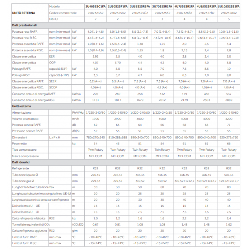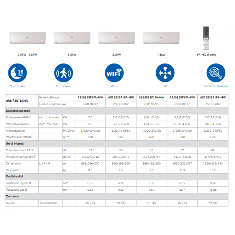 Unita' interna 2 x AS35S2SF1FA-MW + Unita' esterna 2U50S2SF1FA Colore bianco