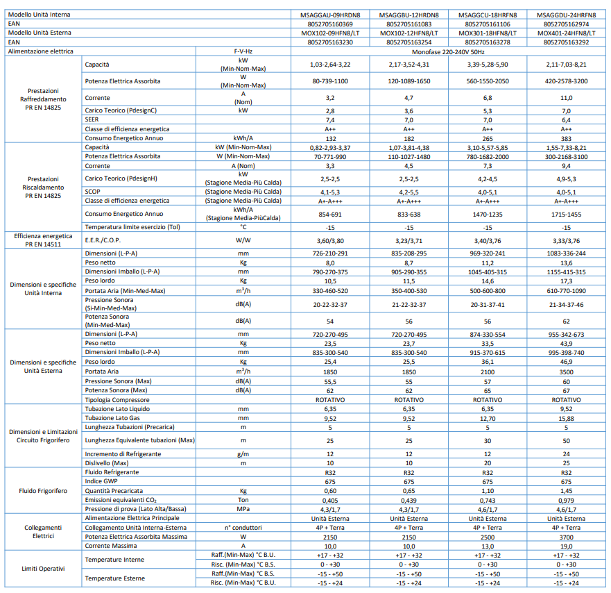 Split: Le unità interne possono essere connesse con le unità esterne Mono o Multi Split.