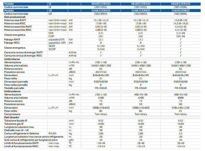 Unit? interna AB48ES1ERA(S) + Unit? esterna 1U48LS1ERB(S) - TRIFASE con alimentazione a 380V