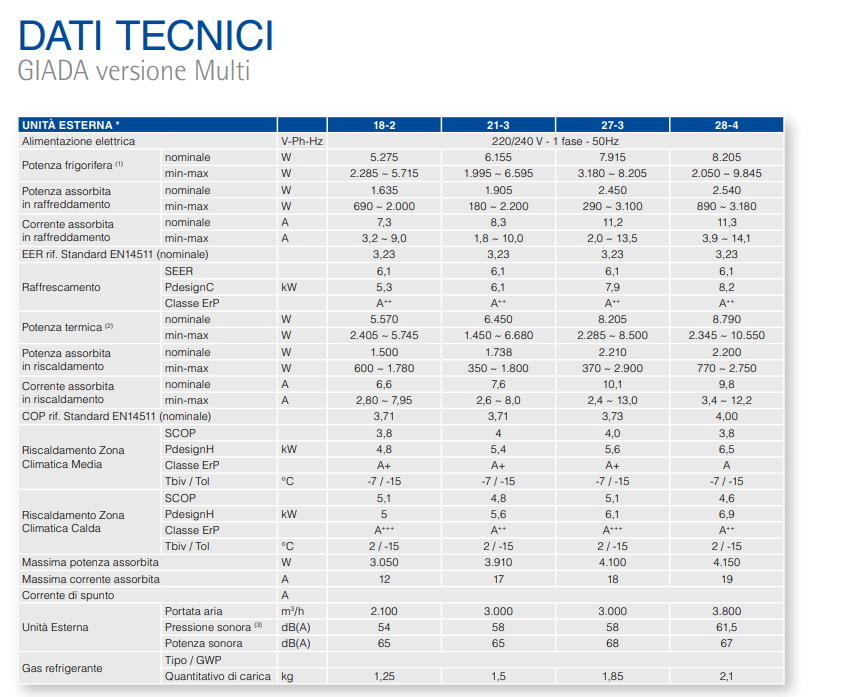 Le versioni mono-split dei Giada, ad esempio, non scendono mai sotto la classe A++. Inoltre, utilizzano refrigerante R32, un gas ecologicamente più sostenibile: non intacca l’ozono ed ha un GWP di circa un terzo rispetto al più classico R410A. Tutti i Giada si possono poi collegare alla tua Wi-Fi, come standard, senza costosi accessori. Sono inclusi anche un doppio stadio di filtrazione ed un trattamento evoluto alla batteria esterna per proteggerla a lungo dagli agenti atmosferici.