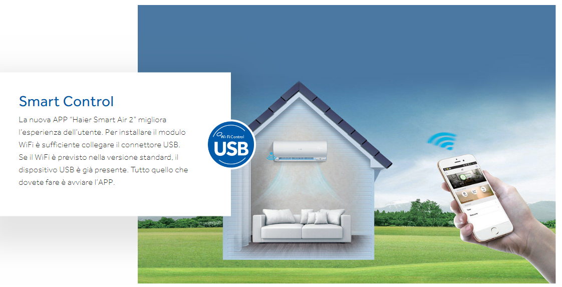 Moduli Wi-Fi per il controllo remoto tramite Cloud Haier e APP dedicata, su Smartphone o Tablet, compatibile Android e IOS.