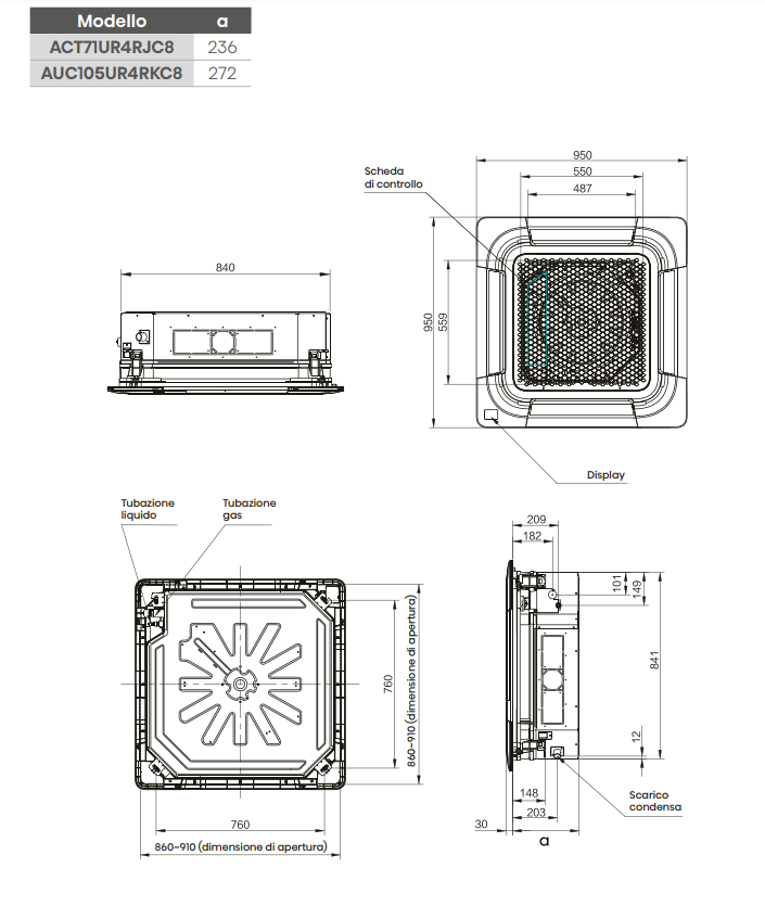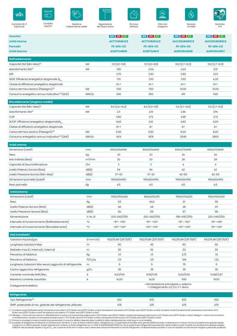 Unità interna ACT71UR4RJC8 + Unità esterna AUW71U4RK8 - WiFi acquistabile separatamente (codice articolo 299)